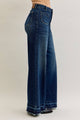 Our HW Palazzo Front Patch Pkts jeans from Judy Blue Jeans are the ideal blend of comfort and style. Designed for the contemporary woman, these high-waisted jeans are perfect for everyday wear. The dark wash and solid pattern add a touch of sophistication, while the wide-leg cut gives a nod to the fall/winter season. With a composition of 94% cotton, 5% polyester, and 1% spandex, these jeans offer a comfortable stretch for daily activities. The front rise is 10 3/4" with a 33" inseam.