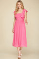 Introducing our Spring Forward Pink Dress, a beautiful addition to any wardrobe. This luxurious dress exudes elegance and sophistication with its gorgeous design. Perfect for any occasion, it will make you feel confident and stylish. Embrace the beauty of spring with this stunning dress.