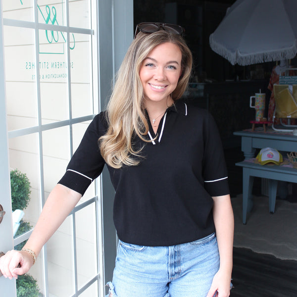 Meet your new favorite layering piece! This black sweater polo blends the polished look of a classic polo with cozy knit comfort. Whether you're running behind schedule or just embracing a relaxed vibe, it's the perfect grab-and-go top that looks put-together without trying too hard. Dress it up or down—this versatile piece does it all.