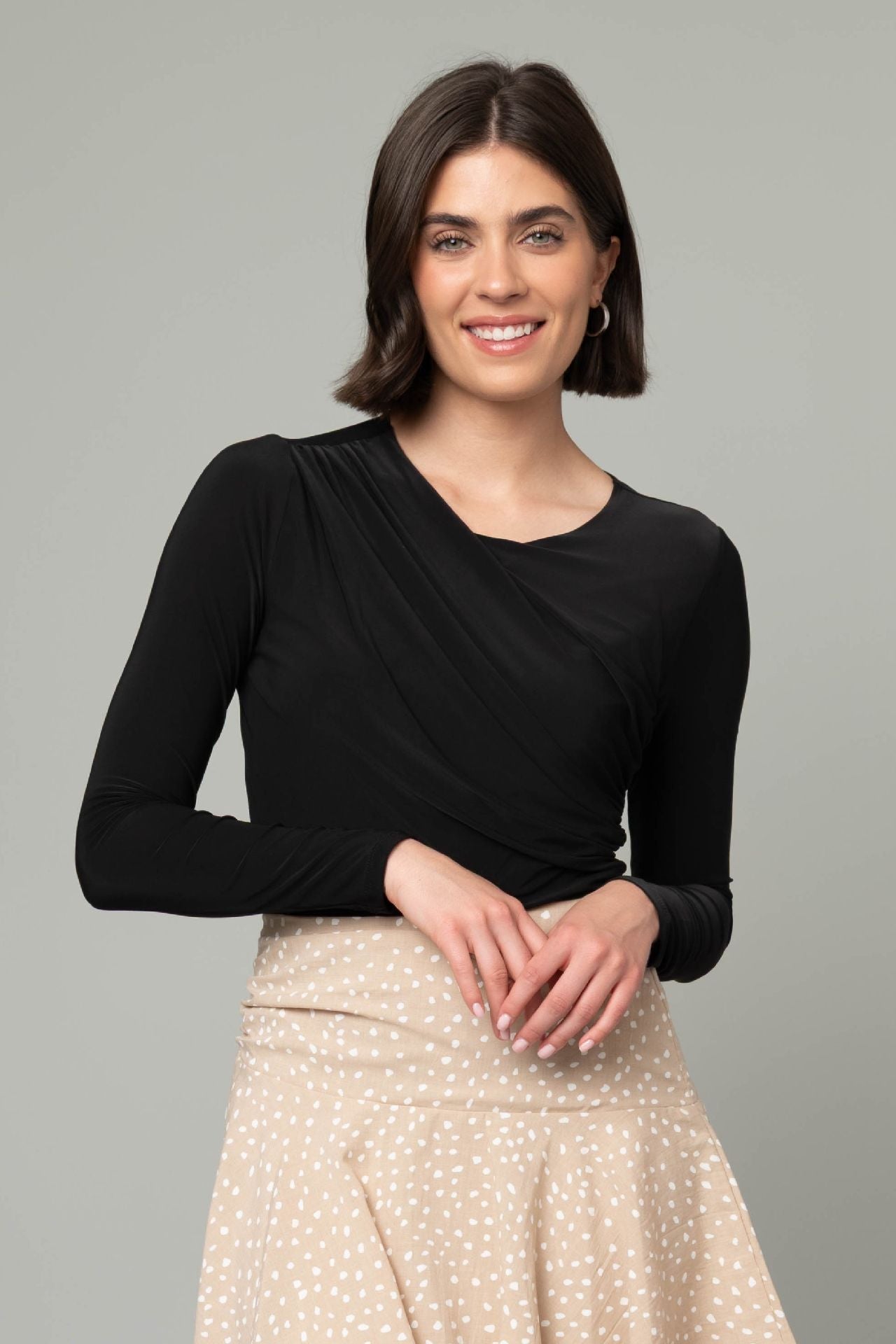 Sleek, flattering, and oh-so-chic! This black ruched bodysuit hugs you in all the right ways with its figure-defining design. The ruching adds dimension and movement while keeping things streamlined and modern. Tuck it into your favorite bottoms or wear it as a statement piece—this versatile essential works for everything from date night to brunch with the girls.