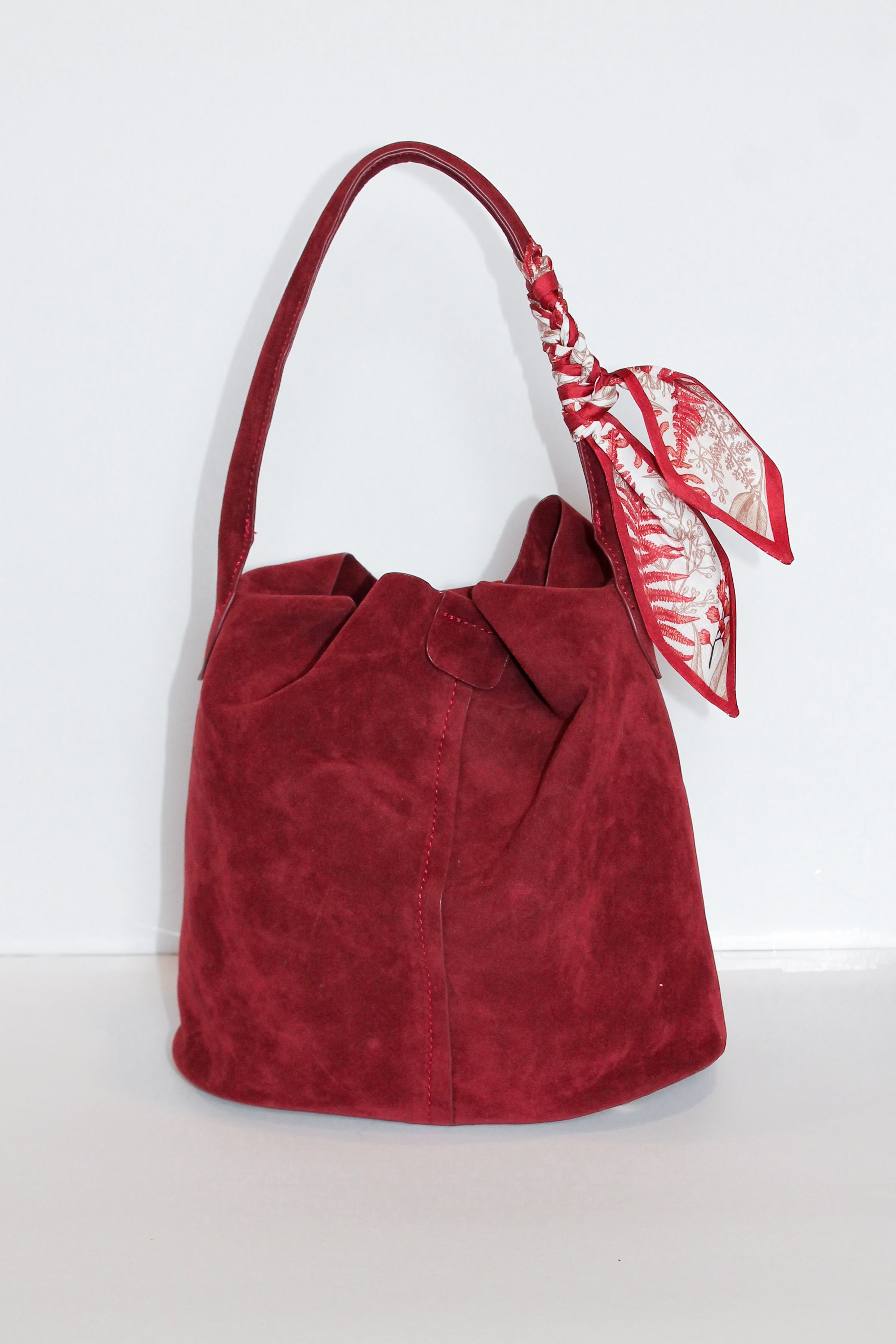 Elevate your everyday style with this gorgeous burgundy suede crossbody bag. Soft, luxurious suede in a rich wine tone pairs perfectly with any outfit, while the crossbody design keeps your hands free and your essentials close. A playful pop of color that's both sophisticated and fun.