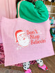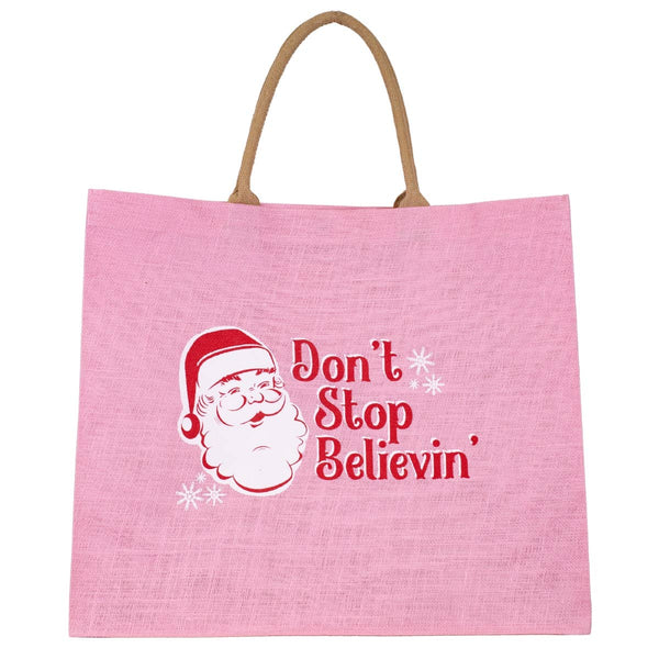 The Don’t Stop Believin’ Carryall Tote in PINK is your holiday reminder to keep the magic going! With its sweet Santa graphic and cheery pink hue, it’s the perfect pick for festive errands, gift runs, and spreading pure Christmas joy.